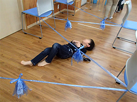 着席して、見る・聞く・話す・待つ・順番を守る・行動することで集中を促す活動です。子どもの表現を大切にしつつ折り合う体験などを通して、集団の中でどう振る舞うべきかを学びながら自己達成感を体験します。